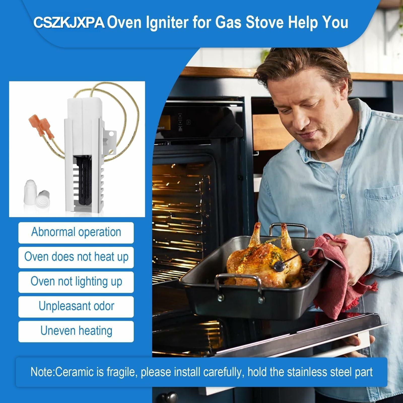 - Important Note: Each AP5315579 gas range oven igniter has passed anti-aging tests,so dont worry about any discolorationigniter oven element replacement wont affect performance!This ensures better heat resistance and a stronger power connection, helping you light your oven burner and adjust temperatures easily.This oven igniter is designed to extend the life of your stove or oven. If you have questions, feel free to contact us;CSZKJXPA is dedicated to providing excellent customer service!